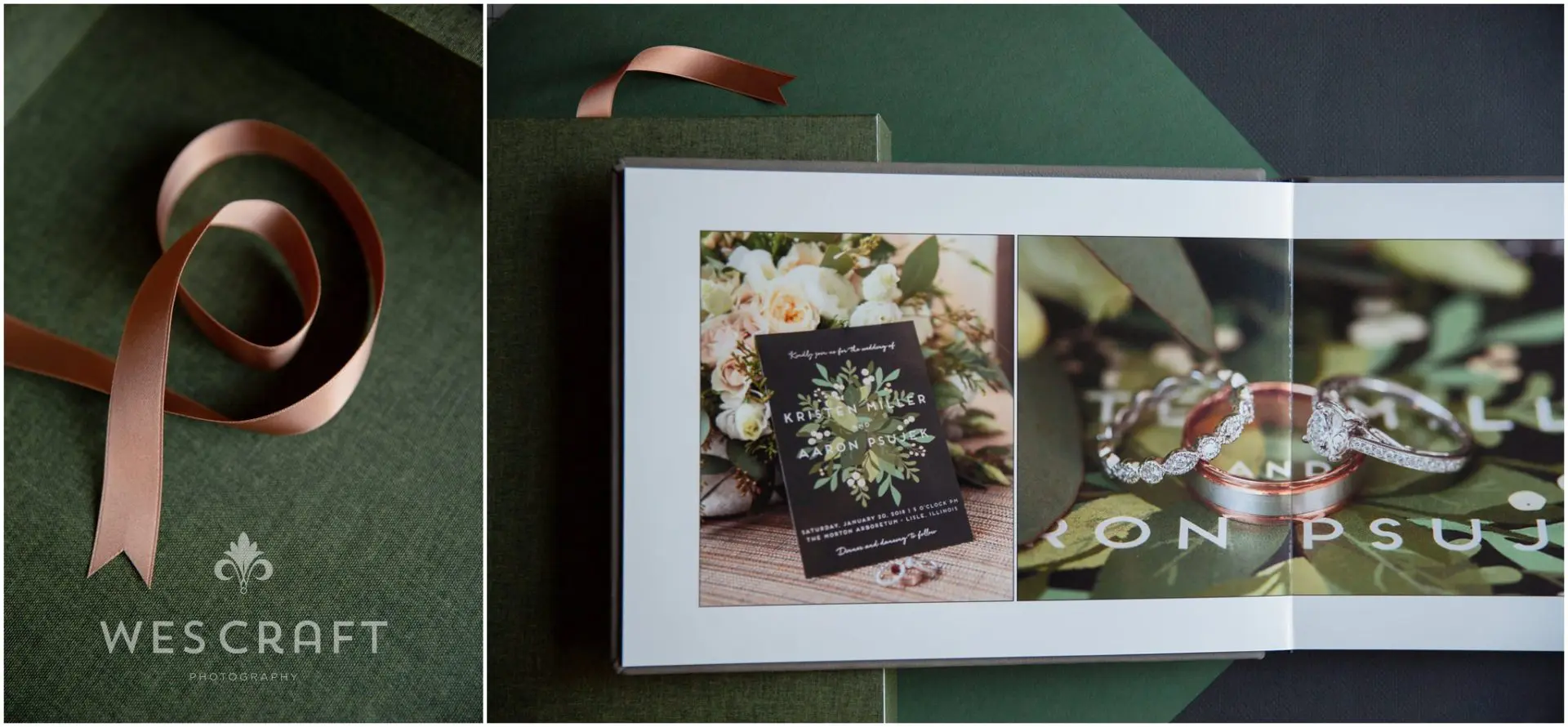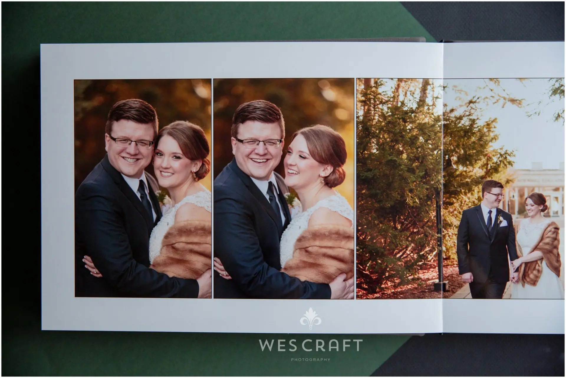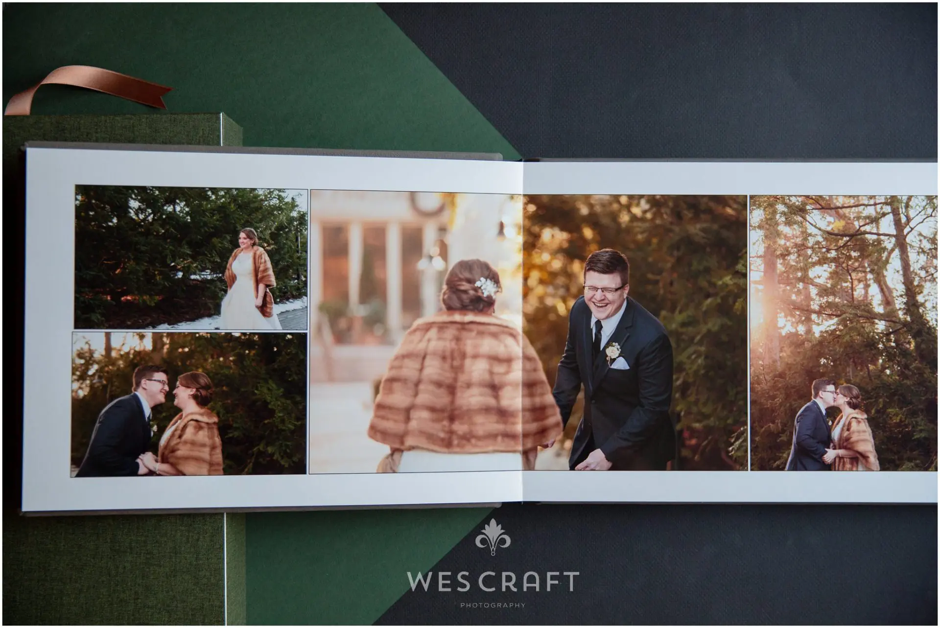 Kristen & Aaron had a Winter wedding at the Morton Arboretum. We worked with them to create a timeless wedding album housed in an evergreen box.