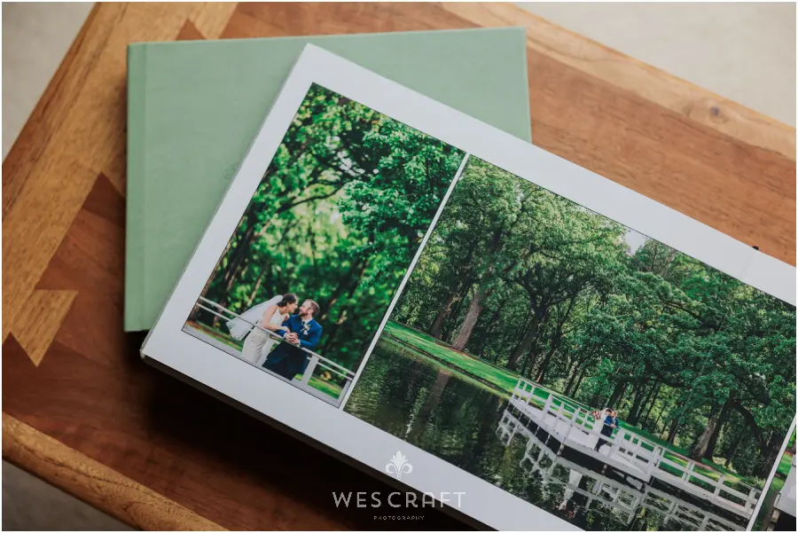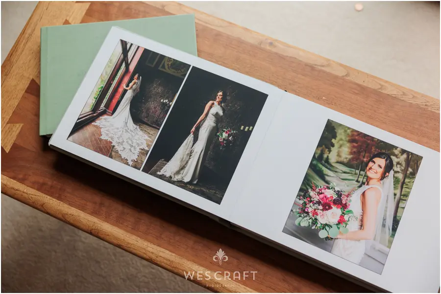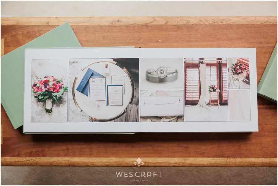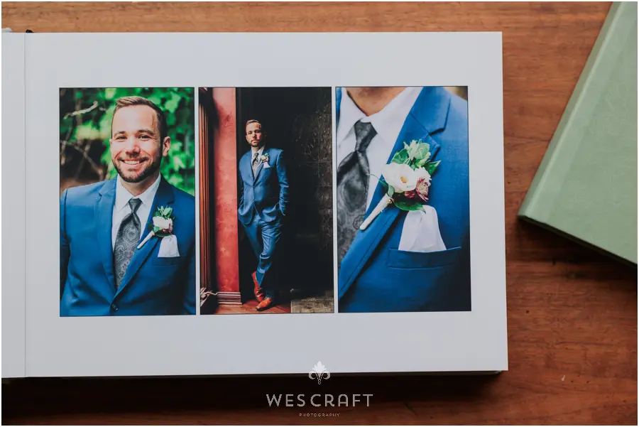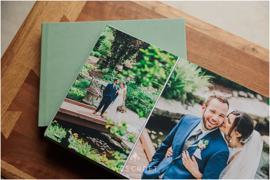 2 parent albums were ordered in 8×12 with upgraded covers. These typically ship with a glossy hardback but S&A had us dress them in an engineered leather. This Sage was the closest we had to the master album’s Sage Grey Signature Leather.